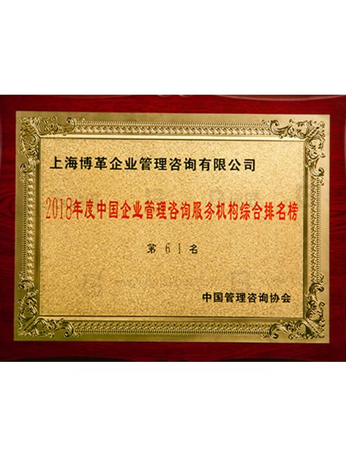 榮登“中國企業管理咨詢服務機構綜合排名榜”