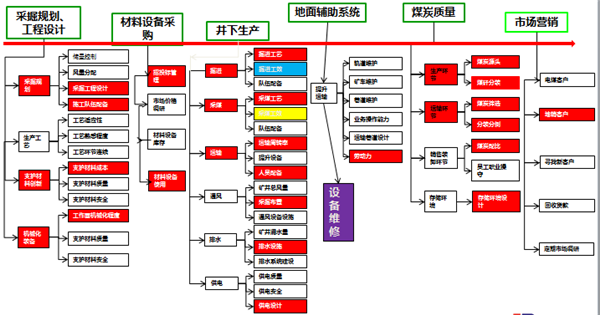 ?學(xué)習(xí)從煤礦生產(chǎn)環(huán)節(jié)找影響因素;繪制生產(chǎn)工序、環(huán)節(jié)流程圖,從各環(huán)節(jié)中尋找“七種浪費(fèi)”,初步掌握價(jià)值鏈分析方法;
