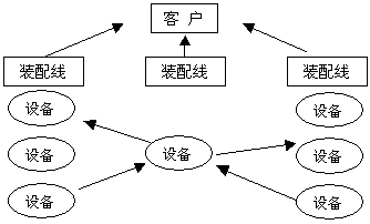 在下圖所示的拉動(dòng)式生產(chǎn)裝配線中,涉及到注塑件、五金沖壓、線路板等各種零件,整個(gè)流程經(jīng)過多臺(tái)設(shè)備,而中間的設(shè)備是大部分零件都須經(jīng)過的中心環(huán)節(jié)。因此,這臺(tái)設(shè)備正是JIT生產(chǎn)制造系統(tǒng)所要控制的瓶頸設(shè)備。