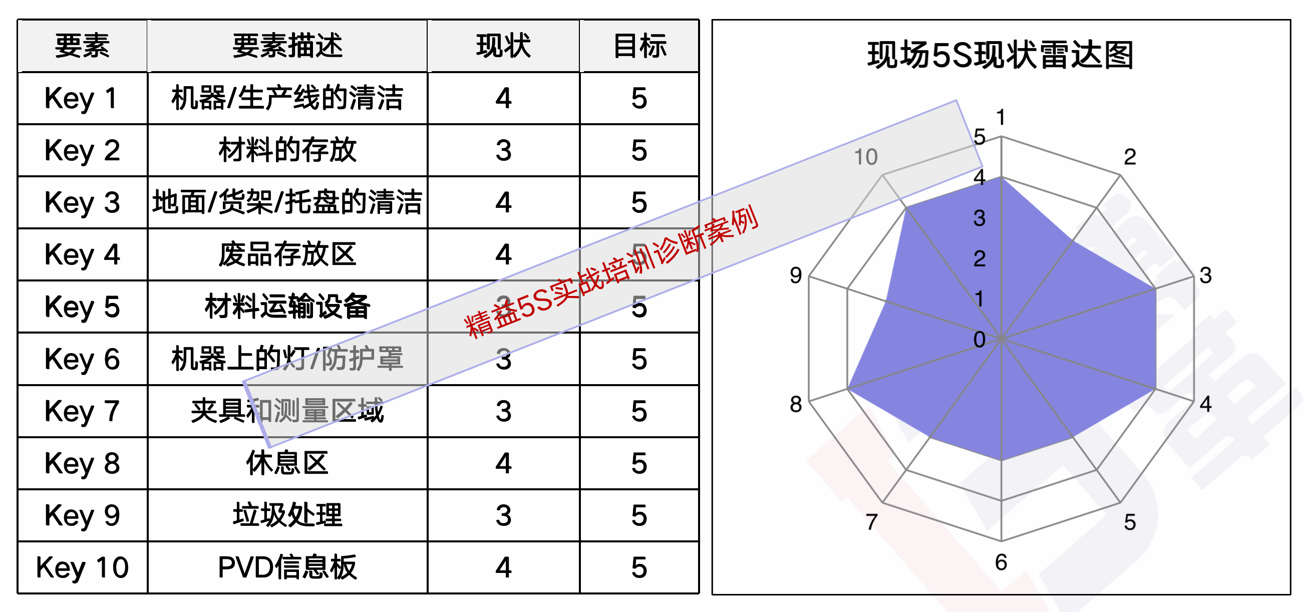 培訓(xùn)顧問在培訓(xùn)前,對(duì)現(xiàn)場(chǎng)5S問題點(diǎn)進(jìn)行診斷取景,使培訓(xùn)講解時(shí)更具有針對(duì)性,以解決現(xiàn)場(chǎng)的突出問題。