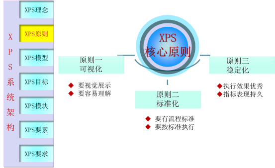 XPS持續變革系統分別從理念,原則,模型、目標、模塊、要素。要求等七個方面進行規劃和建模。既有深度,又有廣度,同時,建立評價要素和實施要求,也達到了集團戰略要求迅速推進精益變革的戰略要求。
