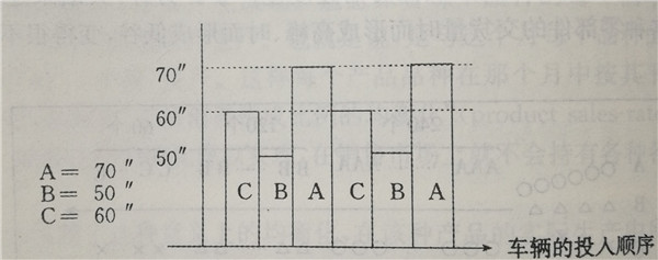 這種裝配工時(shí)的均衡生產(chǎn),從實(shí)現(xiàn)各種裝配工時(shí)的汽車(chē)平均出現(xiàn)率(該工時(shí)車(chē)的輛數(shù)全部車(chē)的總輛數(shù))的觀(guān)點(diǎn)來(lái)看,也可以用與按品種的數(shù)量均衡同樣的方法來(lái)編順序。