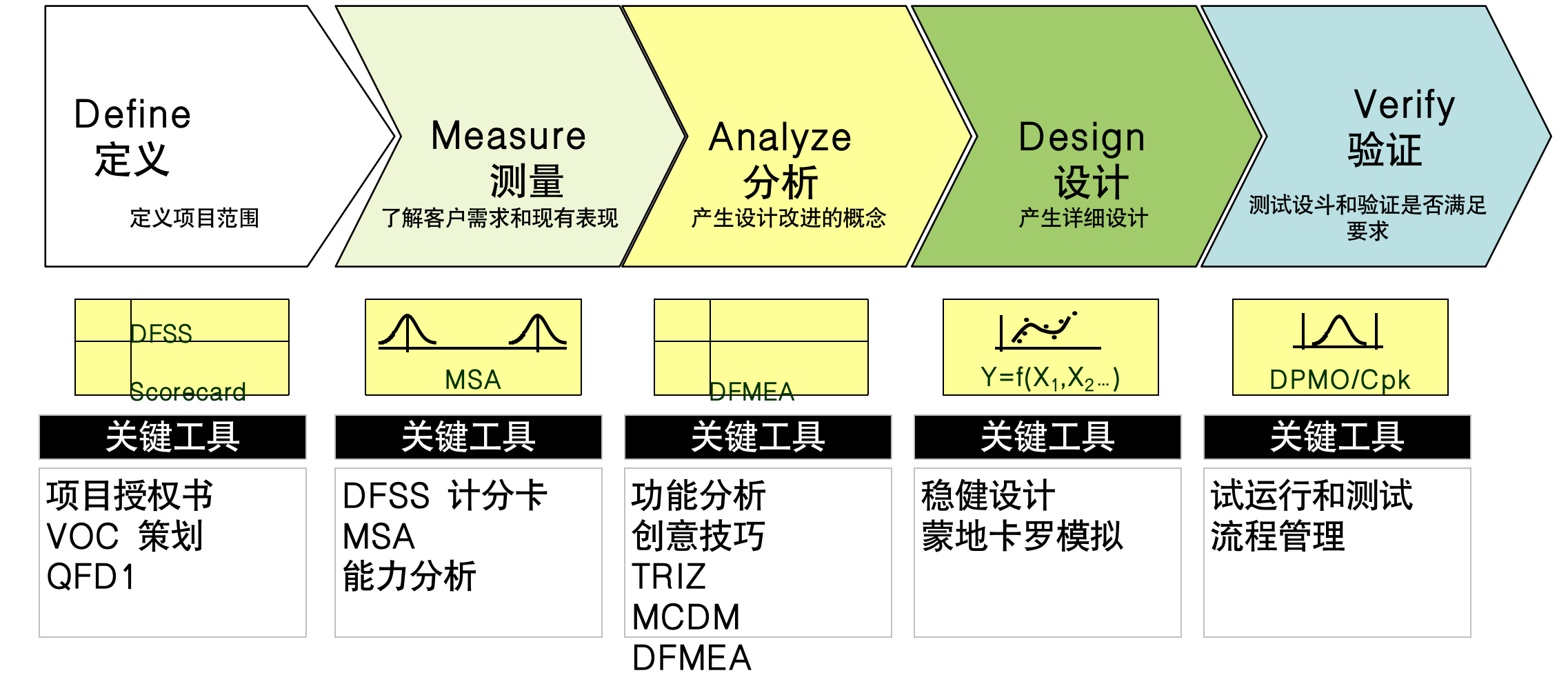 DFSS 的DMADV 路徑以關鍵CTQ 為骨干, 將客戶關注的問題, 作出分析, 生成改善概念并作出驗證, 確保能達到客戶對這個問題的要求