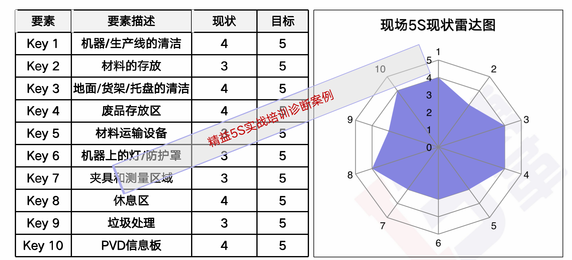 培訓(xùn)顧問在培訓(xùn)前,對(duì)現(xiàn)場(chǎng)5S問題點(diǎn)進(jìn)行診斷取景,使培訓(xùn)講解時(shí)更具有針對(duì)性,以解決現(xiàn)場(chǎng)的突出問題。